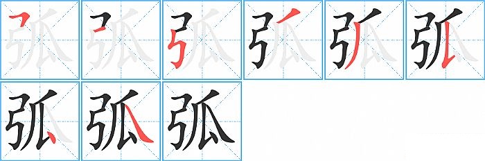 《弧》字的笔顺分步演示图(一笔一画写汉字)
