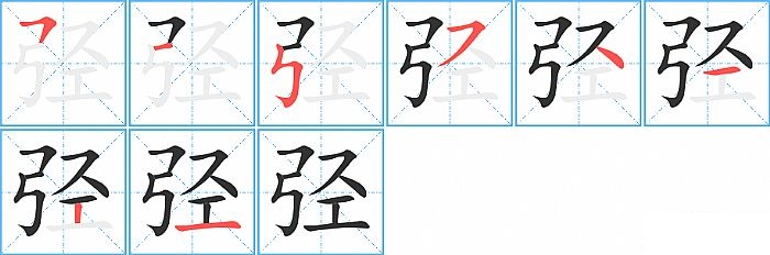 弪是左右结构,弪的部首是“弓”,部外笔画5画,总笔画8画,弪的笔画顺序是“横折、横、竖折折钩、横撇/横钩、点、横、竖、横”。看看“弪”字什么意思 >>