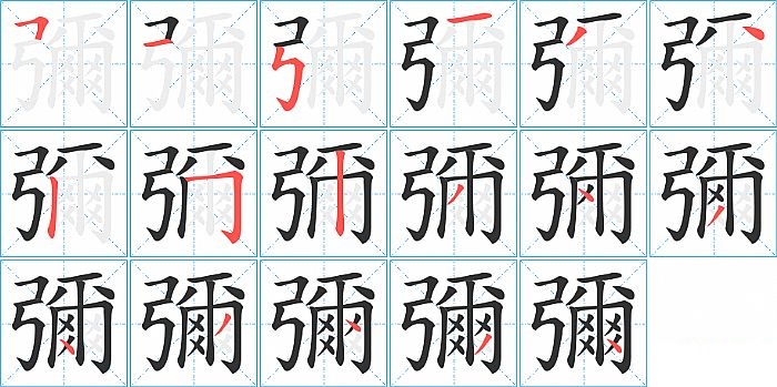 彌是左右结构,彌的部首是“弓”,部外笔画14画,总笔画17画,彌的笔画顺序是“横折、横、竖折折钩、横、撇、点、竖、横折钩、竖、撇、点、撇、点、撇、点、撇、点”。看看“彌”字什么意思 >>