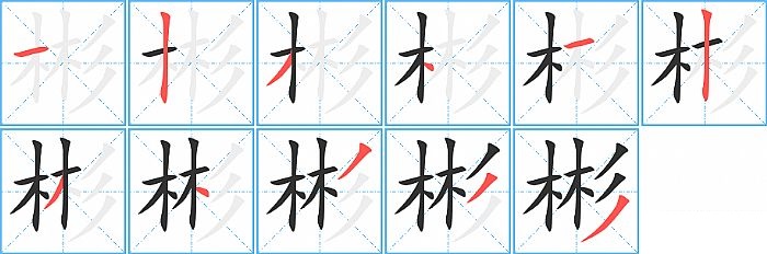 《彬》字的笔顺分步演示图(一笔一画写汉字)