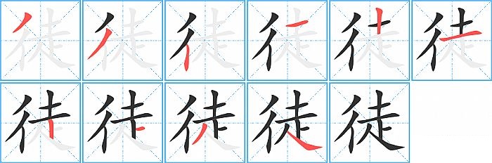 《徒》字的笔顺分步演示图(一笔一画写汉字)