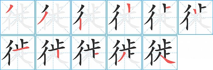 《徙》字的笔顺分步演示图(一笔一画写汉字)