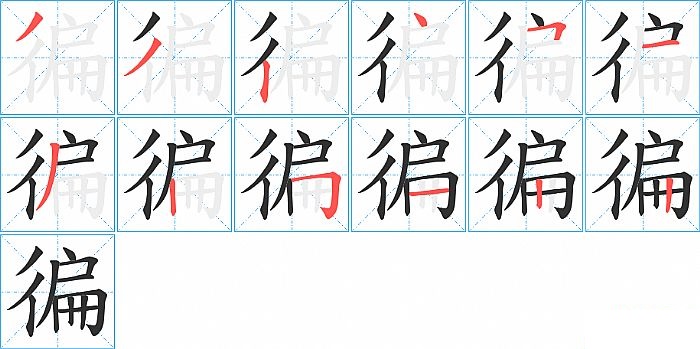 徧是左右结构,徧的部首是“彳”,部外笔画9画,总笔画12画,徧的笔画顺序是“撇、撇、竖、点、横折、横、撇、竖、横折钩、横、竖、竖”。看看“徧”字什么意思 >>