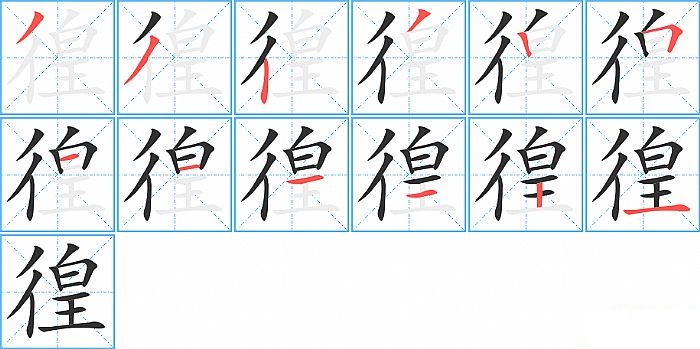 徨是左右结构,徨的部首是“彳”,部外笔画9画,总笔画12画,徨的笔画顺序是“撇、撇、竖、撇、竖、横折、横、横、横、横、竖、横”。看看“徨”字什么意思 >>