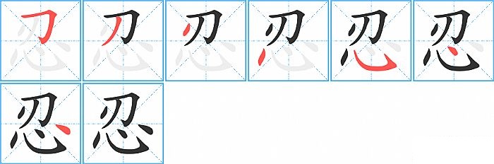 《忍》字的笔顺分步演示图(一笔一画写汉字)