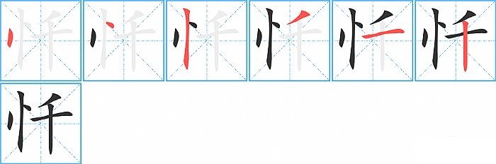 《忏》字的笔顺分步演示图(一笔一画写汉字)