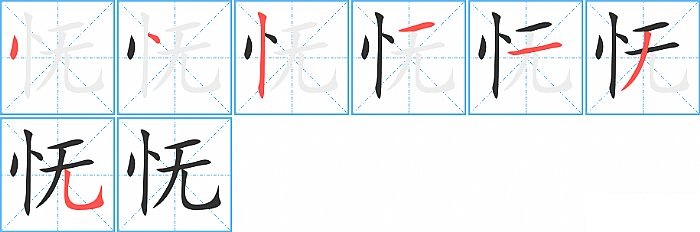 《怃》字的笔顺分步演示图(一笔一画写汉字)