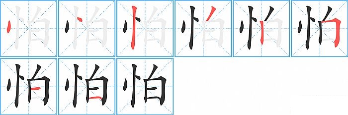 《怕》字的笔顺分步演示图(一笔一画写汉字)