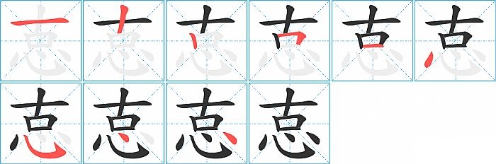 《怘》字的笔顺分步演示图(一笔一画写汉字)