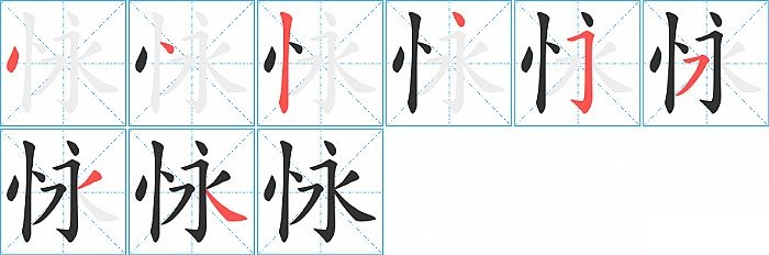 《怺》字的笔顺分步演示图(一笔一画写汉字)