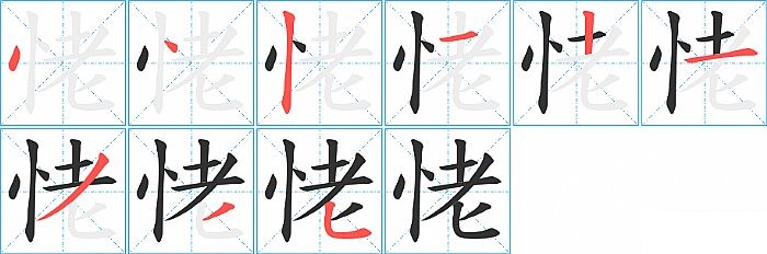 《恅》字的笔顺分步演示图(一笔一画写汉字)