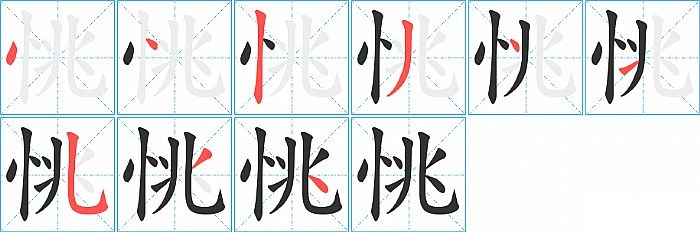 《恌》字的笔顺分步演示图(一笔一画写汉字)