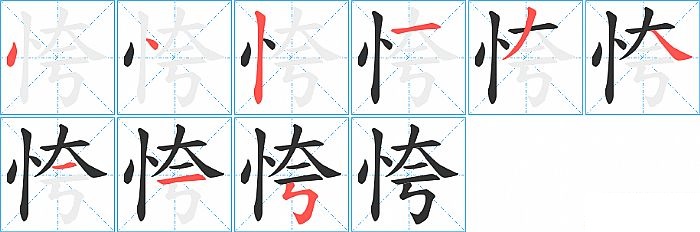 《恗》字的笔顺分步演示图(一笔一画写汉字)