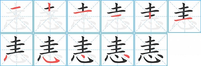《恚》字的笔顺分步演示图(一笔一画写汉字)
