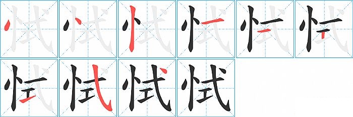 恜是左右结构,恜的部首是“忄”,部外笔画6画,总笔画9画,恜的笔画顺序是“点、点、竖、横、横、竖、提、斜钩、点”。