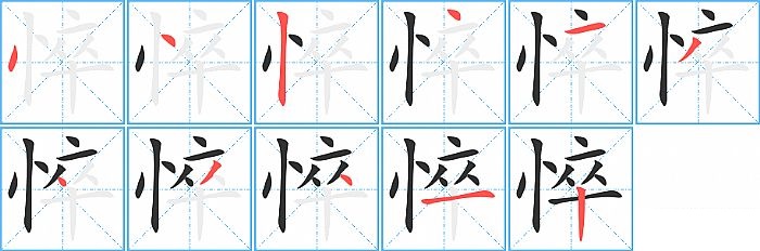 《悴》字的笔顺分步演示图(一笔一画写汉字)