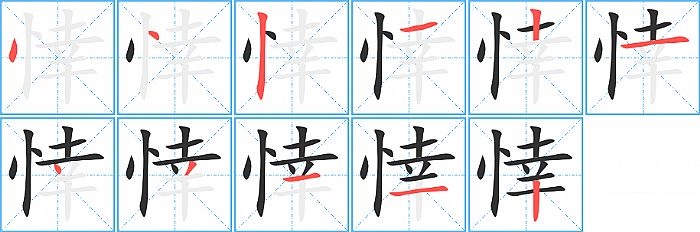 《悻》字的笔顺分步演示图(一笔一画写汉字)
