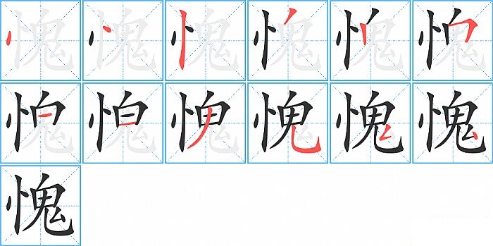 愧是左右结构,愧的部首是“忄”,部外笔画9画,总笔画12画,愧的笔画顺序是“点、点、竖、撇、竖、横折、横、横、撇、竖弯钩、撇折、点”。看看“愧”字什么意思 >>