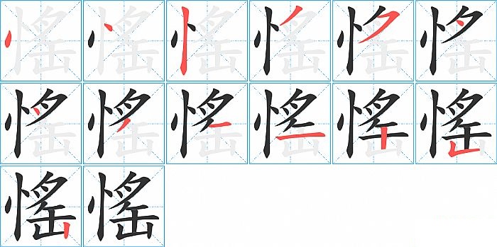 愮是左右结构,愮的部首是“忄”,部外笔画10画,总笔画13画,愮的笔画顺序是“点、点、竖、撇、点、点、撇、撇、横、横、竖、竖折/竖弯、竖”。看看“愮”字什么意思 >>