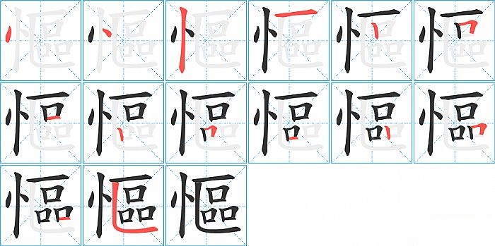 慪是左右结构,慪的部首是“忄”,部外笔画11画,总笔画14画,慪的笔画顺序是“点、点、竖、横、竖、横折、横、竖、横折、横、竖、横折、横、竖折/竖弯”。看看“慪”字什么意思 >>