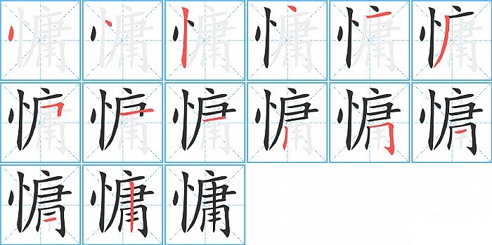慵是左右结构,慵的部首是“忄”,部外笔画11画,总笔画14画,慵的笔画顺序是“点、点、竖、点、横、撇、横折、横、横、竖、横折钩、横、横、竖”。看看“慵”字什么意思 >>