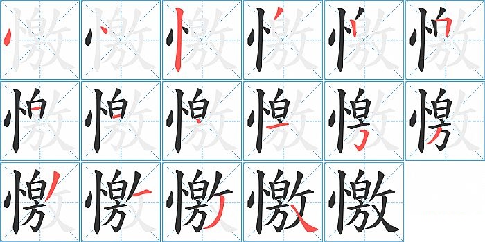憿是左右结构,憿的部首是“忄”,部外笔画13画,总笔画16画,憿的笔画顺序是“点、点、竖、撇、竖、横折、横、横、点、横、横折钩、撇、撇、横、撇、捺”。看看“憿”字什么意思 >>