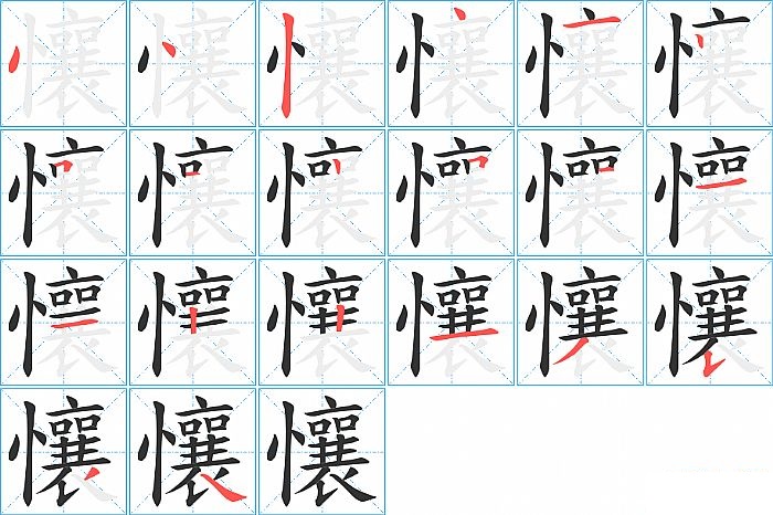 懹是左右结构,懹的部首是“忄”,部外笔画17画,总笔画20画,懹的笔画顺序是“点、点、竖、点、横、竖、横折、横、竖、横折、横、横、横、竖、竖、横、撇、竖提、撇、捺”。看看“懹”字什么意思 >>