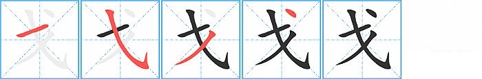 《戈》字的笔顺分步演示图(一笔一画写汉字)