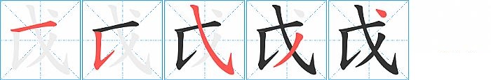 《戉》字的笔顺分步演示图(一笔一画写汉字)