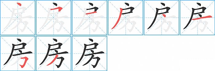 《房》字的笔顺分步演示图(一笔一画写汉字)