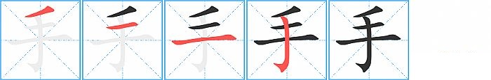 《手》字的笔顺分步演示图(一笔一画写汉字)