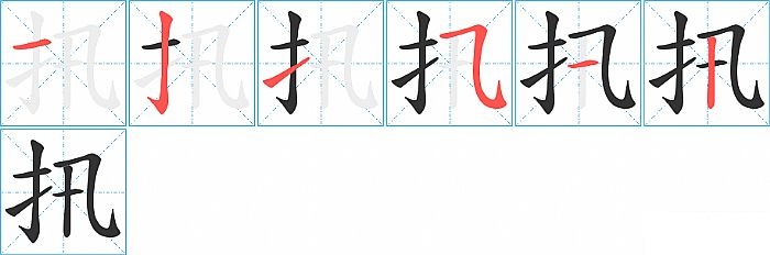 《扟》字的笔顺分步演示图(一笔一画写汉字)
