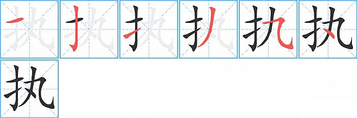 《执》字的笔顺分步演示图(一笔一画写汉字)