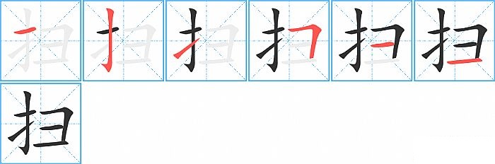 《扫》字的笔顺分步演示图(一笔一画写汉字)