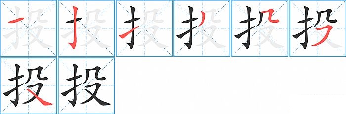 投是左右结构,投的部首是“扌”,部外笔画4画,总笔画7画,投的笔画顺序是“横、竖钩、提、撇、横折折/横折弯、横撇/横钩、捺”。看看“投”字什么意思 >>