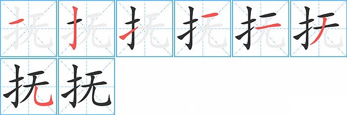 《抚》字的笔顺分步演示图(一笔一画写汉字)