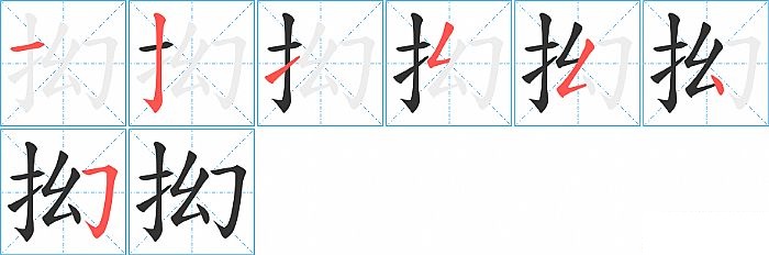 《抝》字的笔顺分步演示图(一笔一画写汉字)