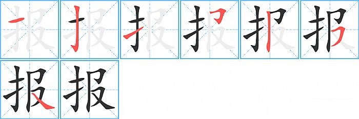 《报》字的笔顺分步演示图(一笔一画写汉字)