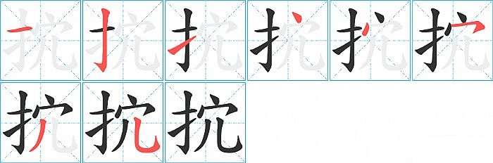 抭是左右结构,抭的部首是“扌”,部外笔画5画,总笔画8画,抭的笔画顺序是“横、竖钩、提、点、点、横撇/横钩、撇、横折弯钩/横斜钩”。看看“抭”字什么意思 >>