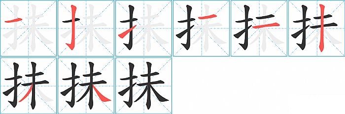 《抺》字的笔顺分步演示图(一笔一画写汉字)