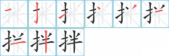 《拌》字的笔顺分步演示图(一笔一画写汉字)