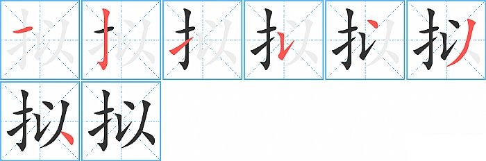 《拟》字的笔顺分步演示图(一笔一画写汉字)