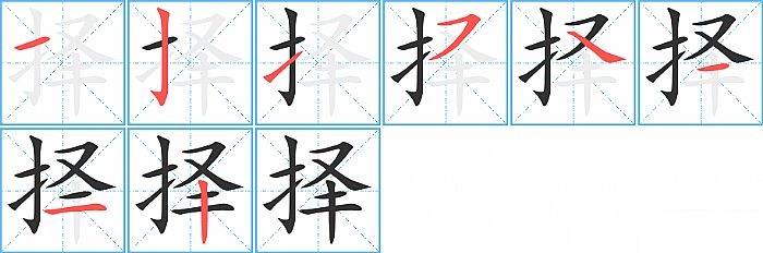 《择》字的笔顺分步演示图(一笔一画写汉字)
