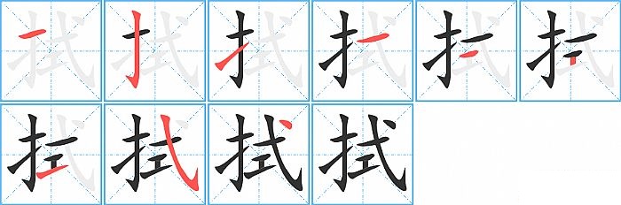 《拭》字的笔顺分步演示图(一笔一画写汉字)