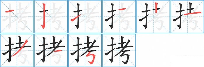 《拷》字的笔顺分步演示图(一笔一画写汉字)