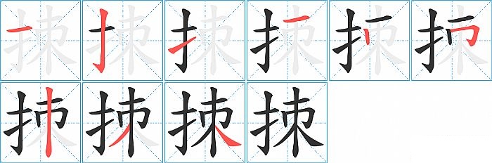《拺》字的笔顺分步演示图(一笔一画写汉字)