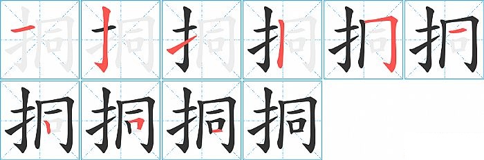 《挏》字的笔顺分步演示图(一笔一画写汉字)