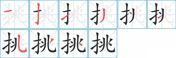 《挑》字的笔顺分步演示图(一笔一画写汉字)