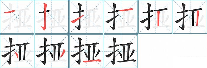 《挜》字的笔顺分步演示图(一笔一画写汉字)