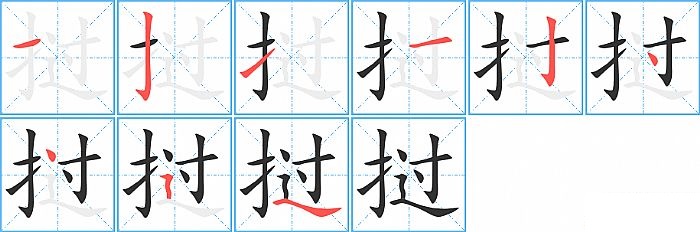 《挝》字的笔顺分步演示图(一笔一画写汉字)